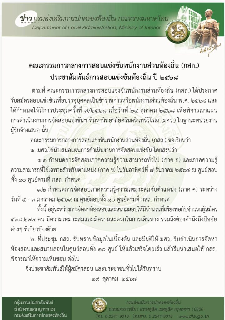 เว็บไซต์ประกาศสถานที่สอบ > https://dla-local2568.thaijobjob.com/