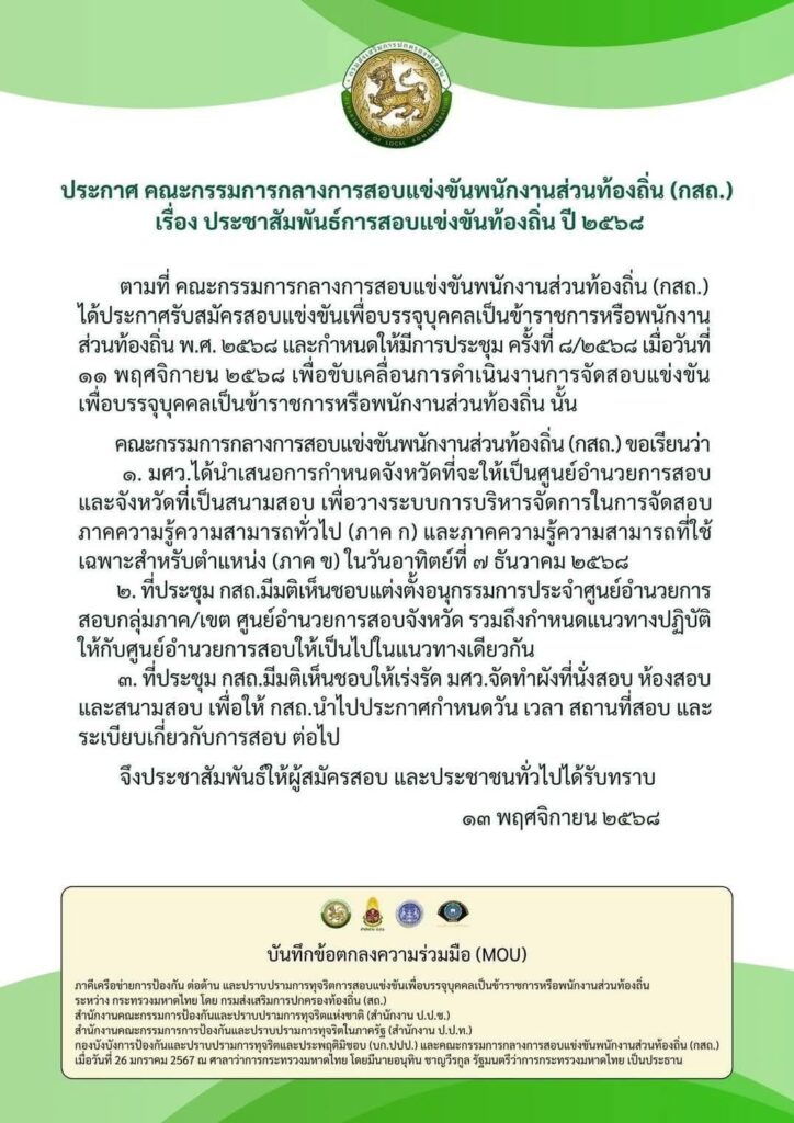 คณะกรรมการ กสถ.มีมติ กำหนดวันสอบแข่งขัน 7 ธ.ค.68 ป.เชื้อ