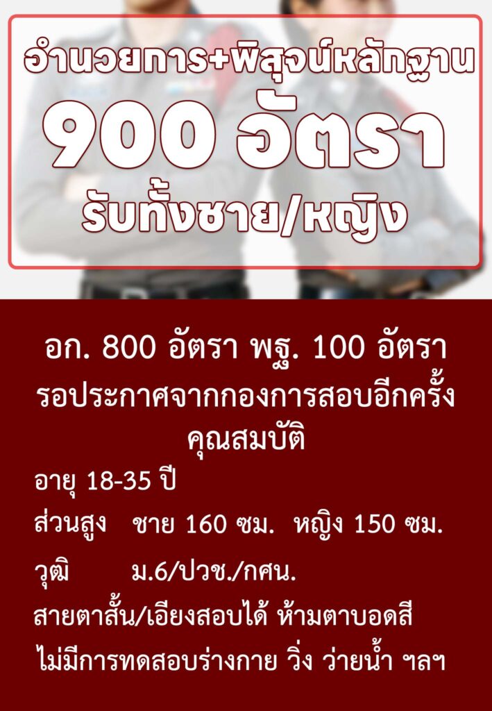 สำนักงานตำรวจแห่งชาติ เตรียมเปิดสอบนายสิบตำรวจ สายอำนวยการ พิสุจน์หลักฐาน หญิง/ชาย 900 อัตรา เปิดรับสมัครเร็วๆนี้