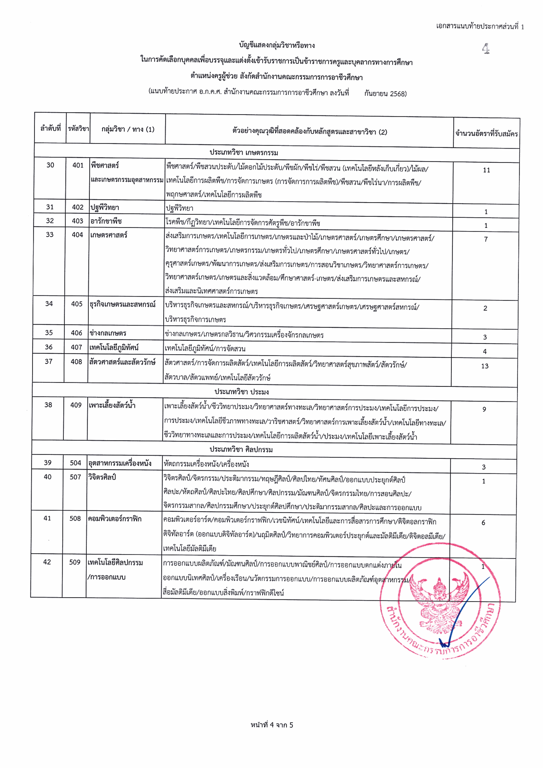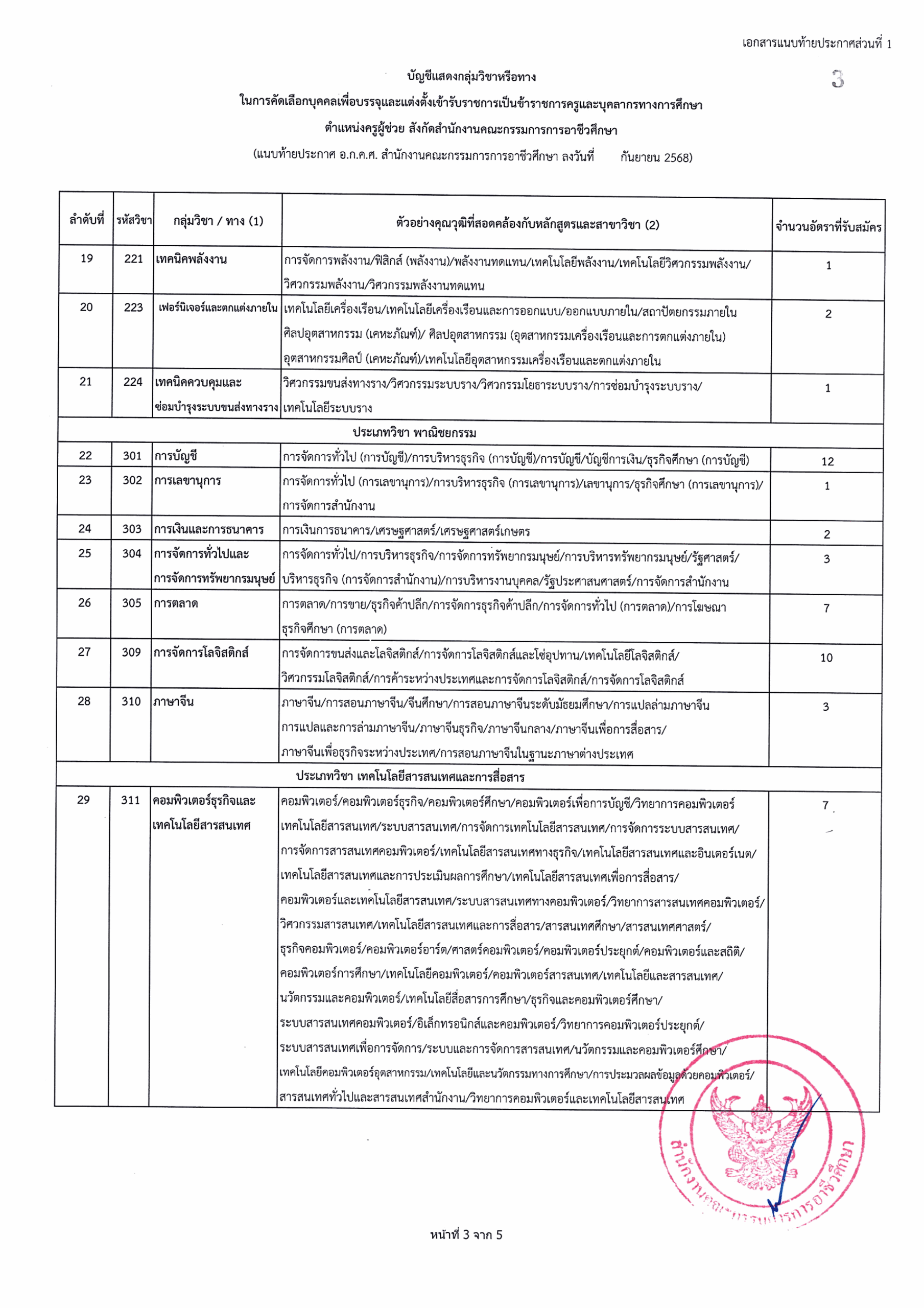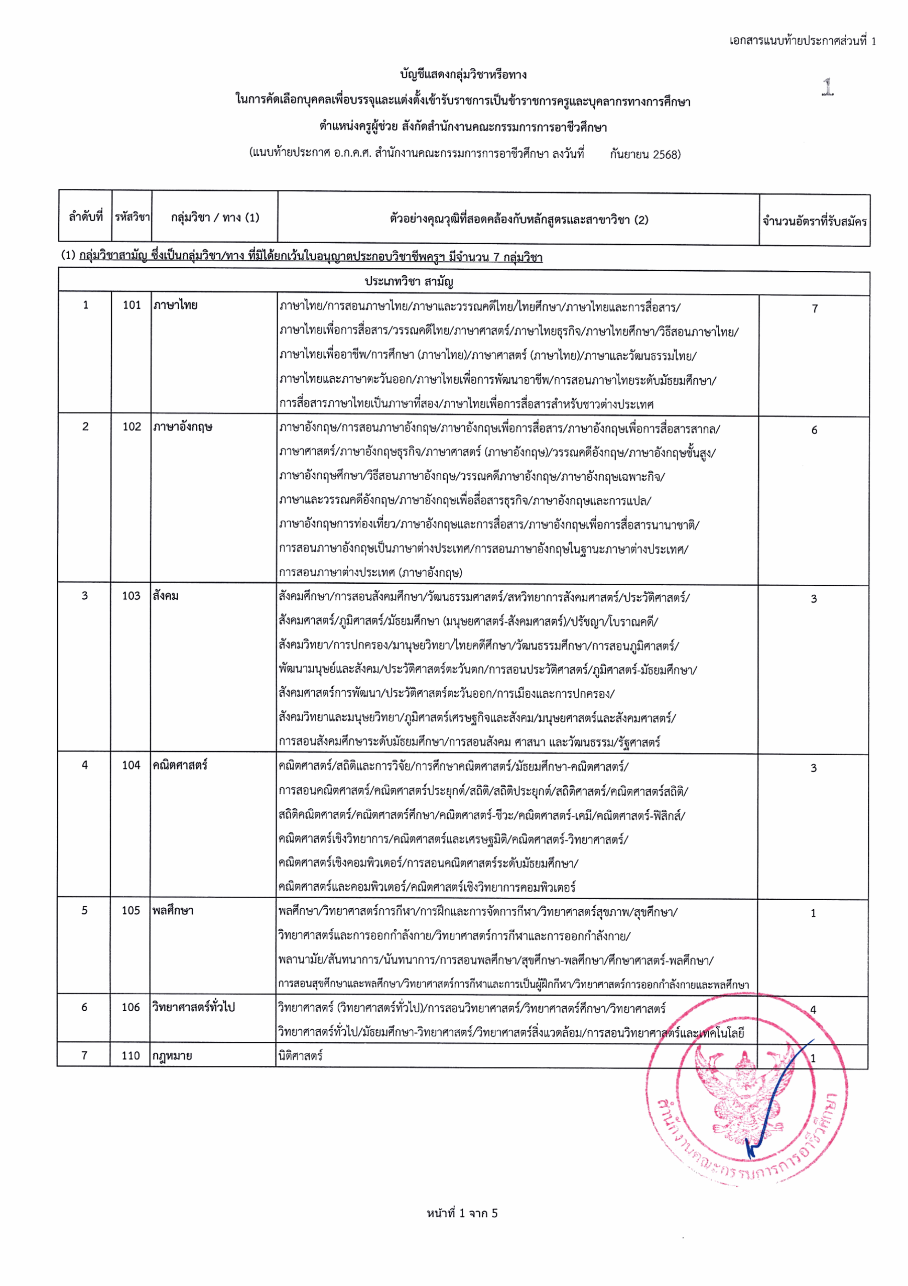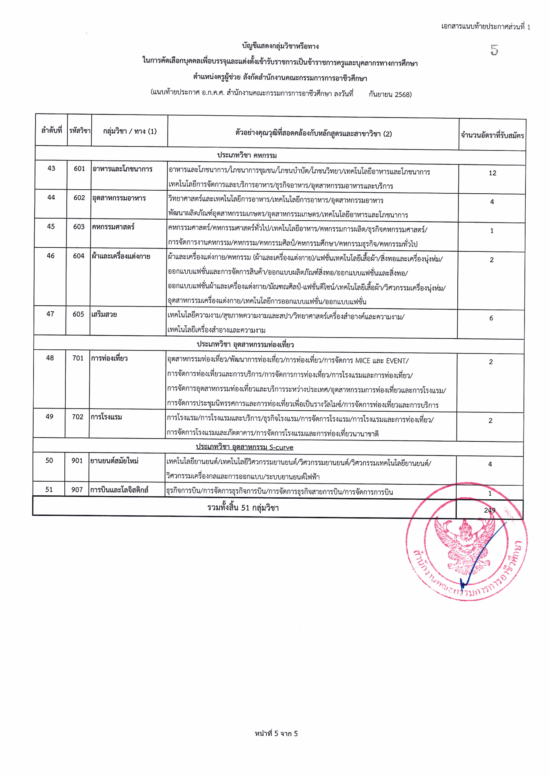 กลุ่มวิชาที่เปิดรับ จำนวน 51 กลุ่มวิชา