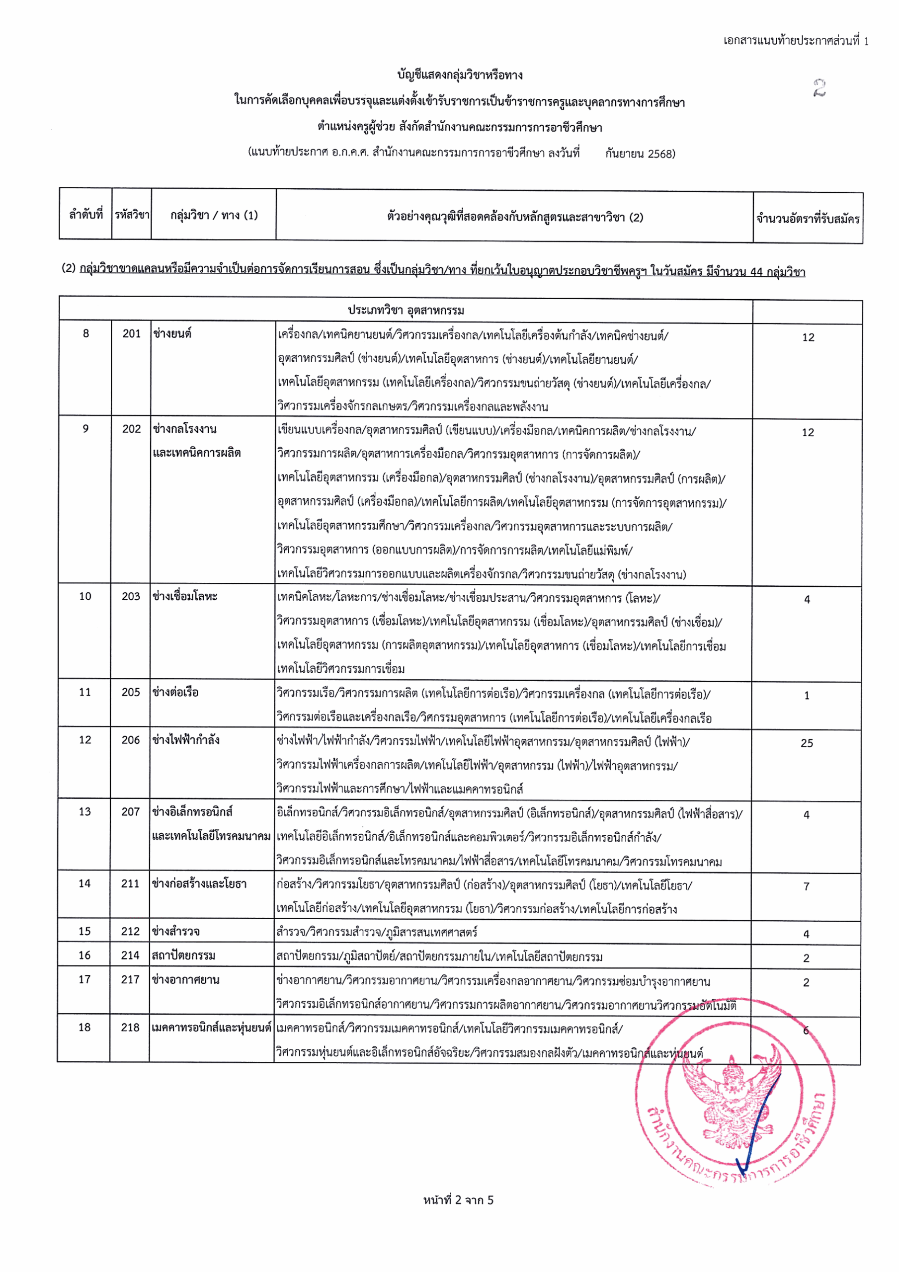 สํานักงานคณะกรรมการการอาชีวศึกษา รับสมัครสอบครูผู้ช่วยอาชีวศึกษา กรณีที่มีความจำเป็นหรือมีเหตุพิเศษ 51 กลุ่มวิชา 249 อัตรา รับสมัคร 22 – 29 กันยายน