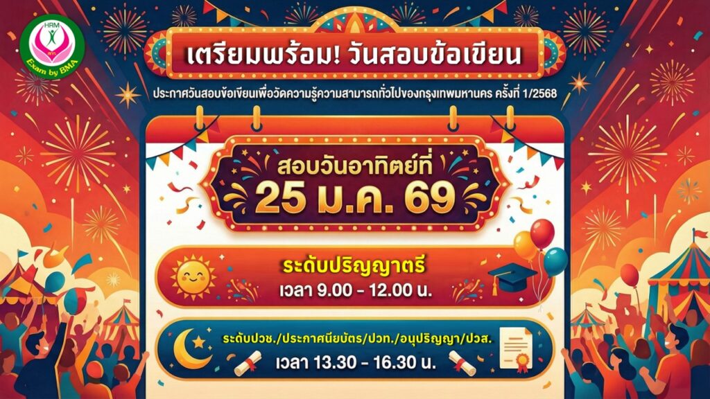 กรุงเทพมหานคร สำหรับใครสมัครสอบภาค ก. กทม. ไว้ ได้วันสอบแล้วนะ วันที่ 25 มกราคม 2569