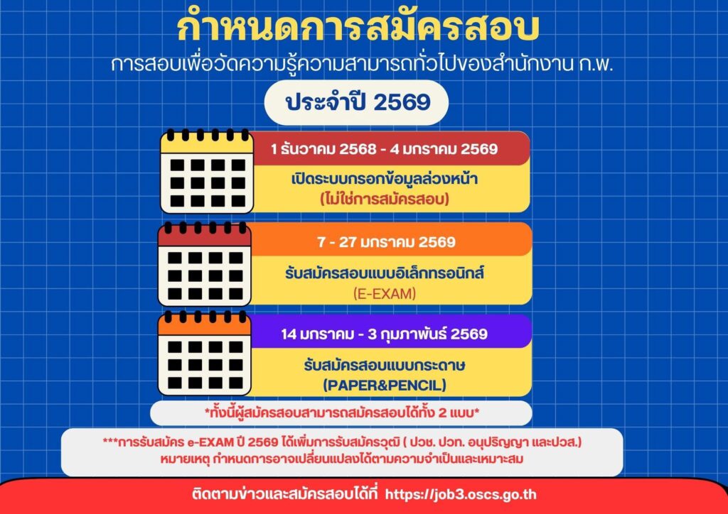 แบบอิเล็กทรอนิกส์ (e-Exam): วันที่ 7 – 27 มกราคม 2569